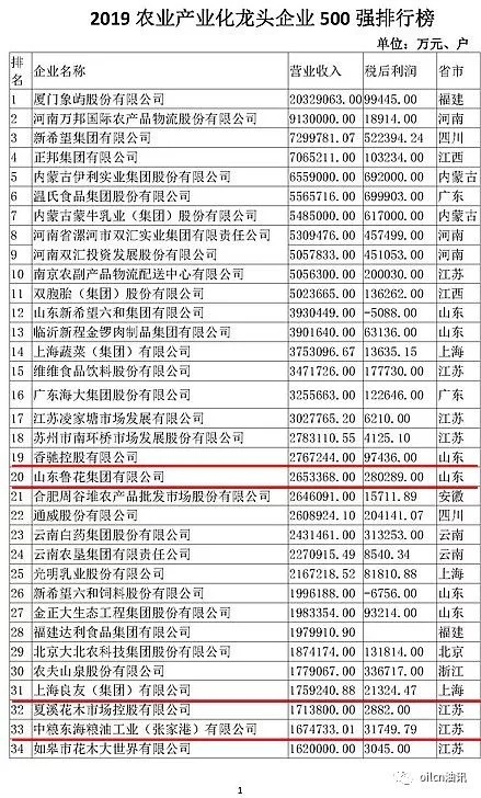2019年中央一號文件明確提出要“培(péi)育農業(yè)產業化龍頭企(qǐ)業和(hé)聯合體”,以(yǐ)肩負起推(tuī)進農業農村現代化和鄉村振興的重要使命,上榜油(yóu)企們將乘勢進入快速發展的新階段(duàn)。(轉自油訊)