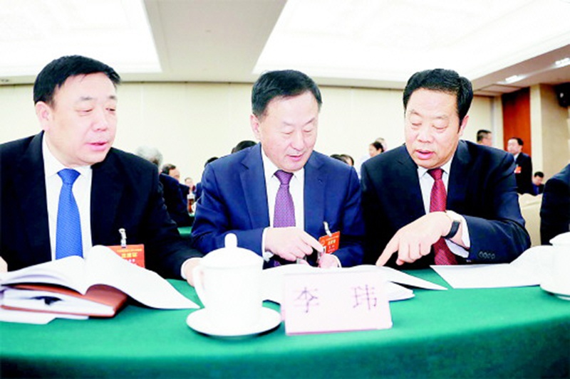 3月12日,李希勇、李瑋、李學海(自左至右)等山東代表團代表,一起審議最高人民(mín)法院工作報告和最高人民檢察院工作報告。