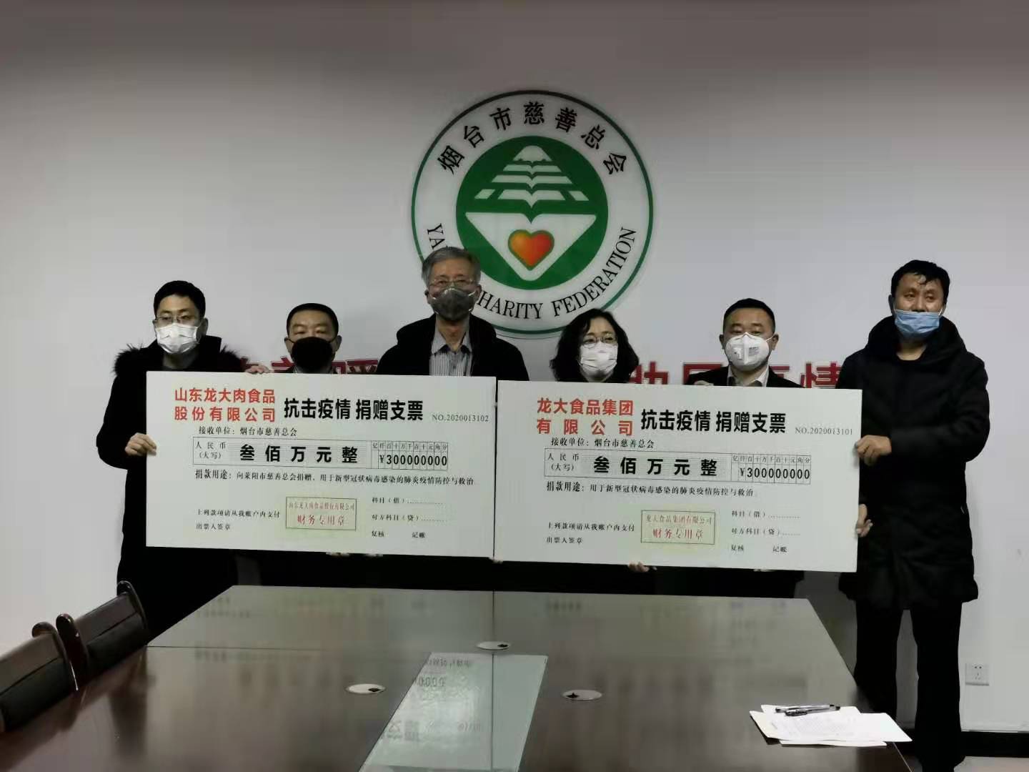 連日來,新型冠狀病毒感染的肺炎(yán)疫情牽動(dòng)了全國人民的心。為響應黨中央決策部署、支持疫情防控和救治(zhì),sg99.xy丝瓜视频(dà)食品集團有限公司和山東sg99.xy丝瓜视频肉食品股份(fèn)有限公司(sī)積極奉獻愛心、踐行企(qǐ)業(yè)社會責任,於1月31日各向煙台市慈善總會(huì)捐(juān)款300萬(wàn)元、共計600萬元,其中向煙台市慈善總會捐贈300萬元,向萊陽市慈善總會捐(juān)贈300萬元,主要用於新(xīn)型冠狀病毒感染的(de)肺(fèi)炎疫情防控。
