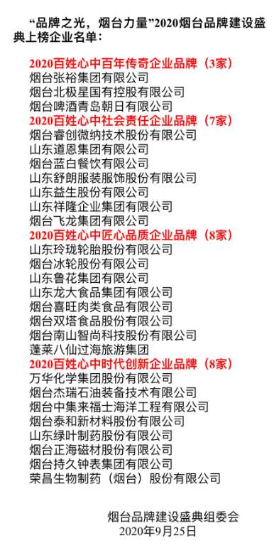 “品牌之(zhī)光 煙台力量”2020煙台品牌建設盛典隆重舉行