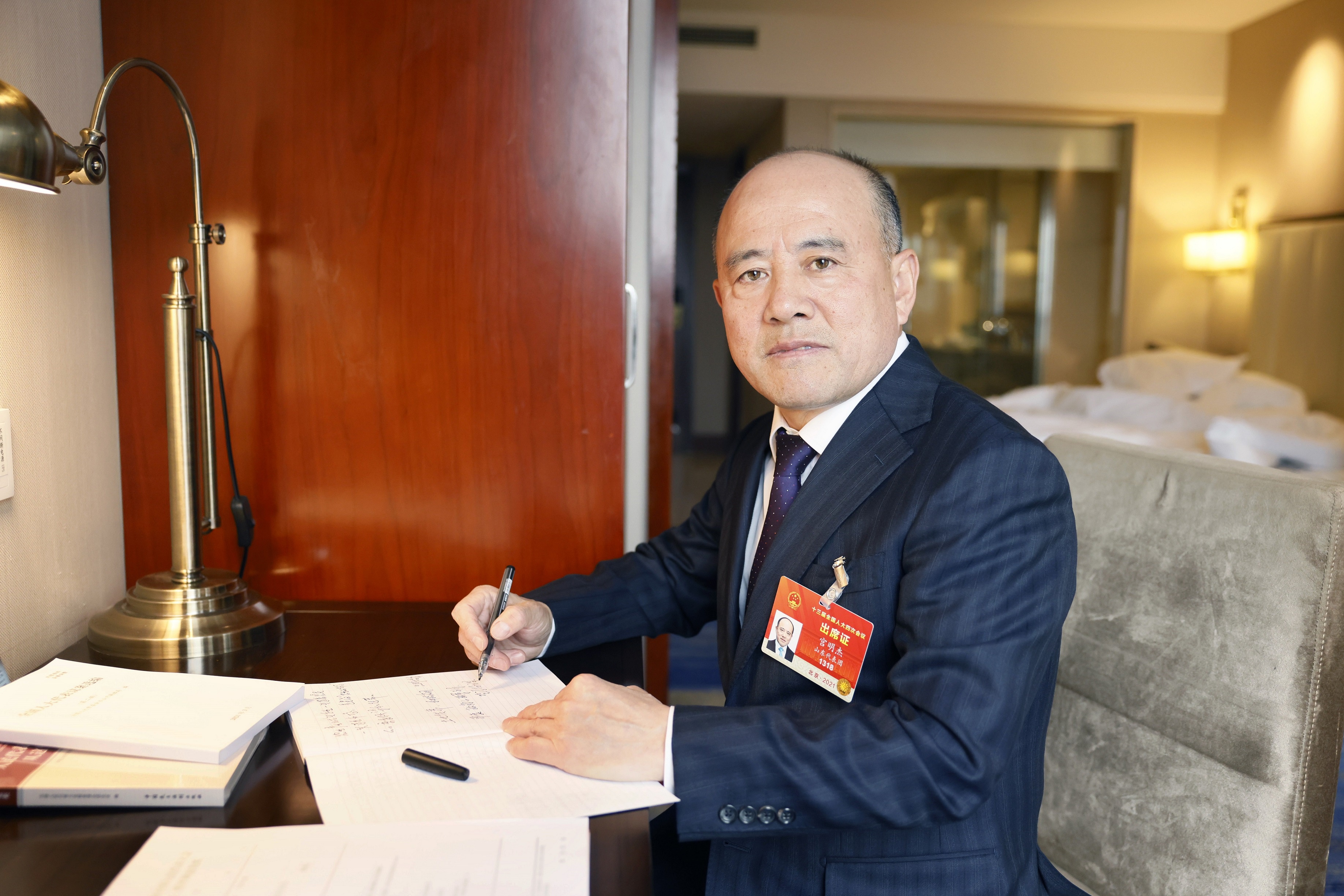山東代表團舉行全體會議審議政府工(gōng)作報告,宮明傑代表發言。