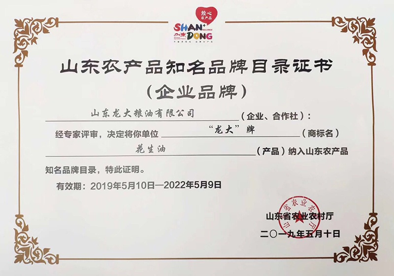 sg99.xy丝瓜视频花生油獲評山東省第四批知名企業產品品牌